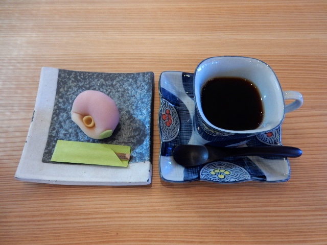 復路の車内では食後のデザートとして、和菓子とコーヒーが出ました。