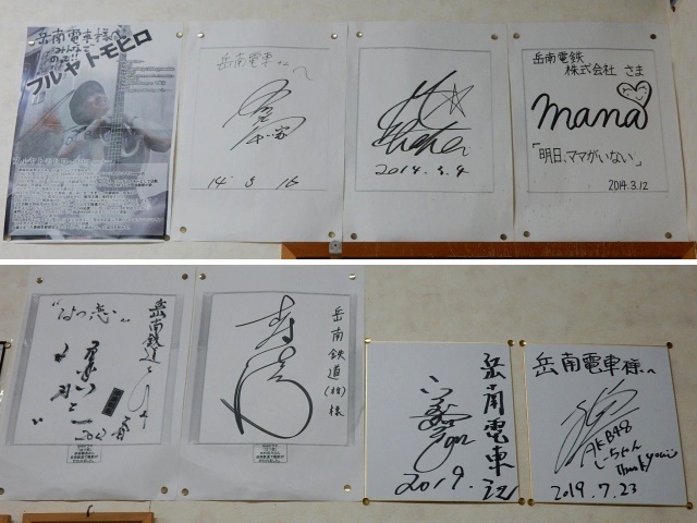 テレビのロケなどで岳南電車を訪れたらしい有名人のサイン色紙も