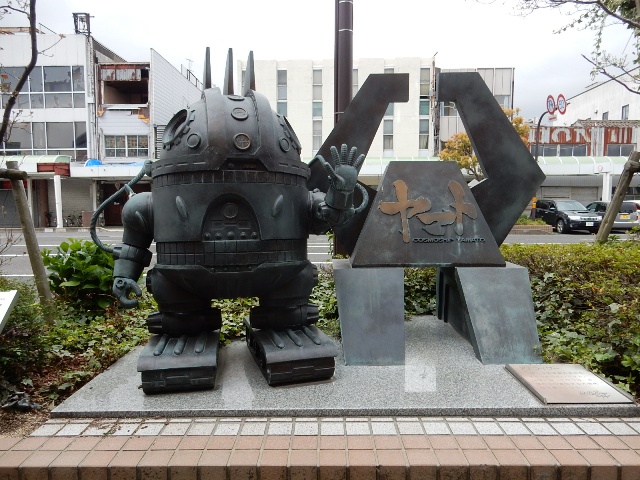 商店街に「宇宙戦艦ヤマト」や「銀河鉄道999」のキャラクターの銅像