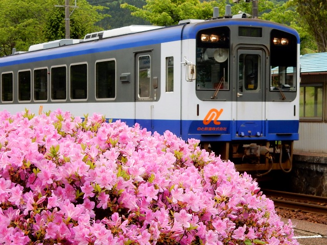 こちらも春には桜がキレイに咲く駅ですが、訪問時はツツジの季節