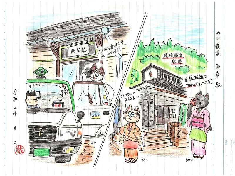 さてのと鉄道(2巡目)の駅ノートですが、続いては西岸駅にやって