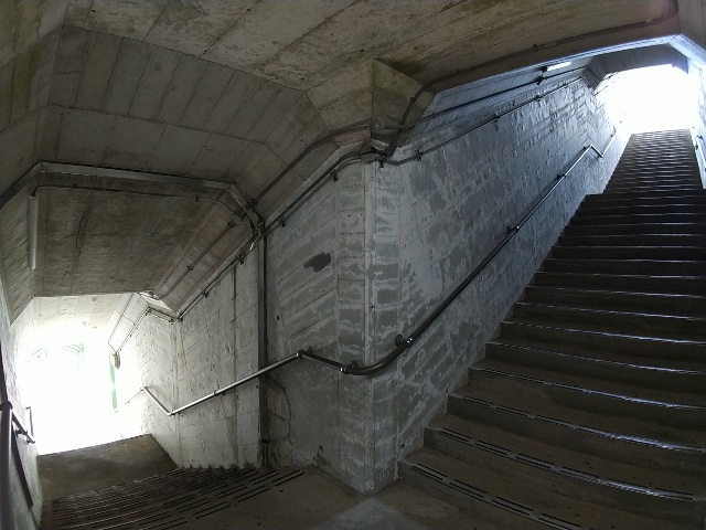 その先が築堤の下を通る地下階段になってまして、左へ曲がると