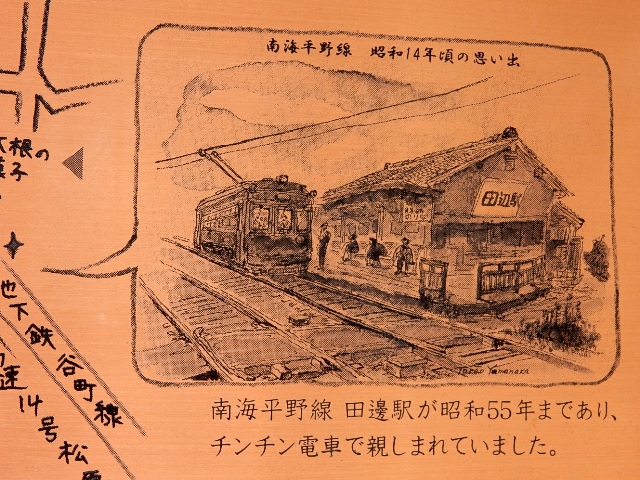 この近くに存在した南海平野線の駅もイラストで紹介されています。