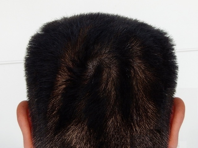 頭皮がシワになって波打ってる箇所があり、短かくすると山と谷で密度