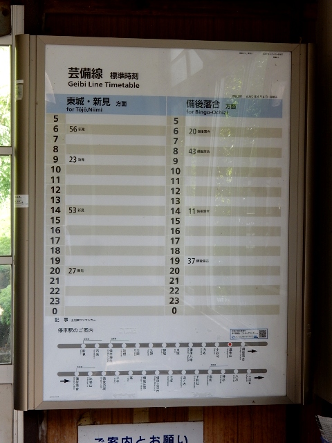 全ての列車は次の備後落合で折り返してくるから、上下線が1対に