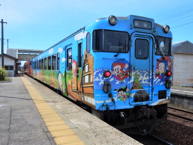 後部の車両が「忍者ハットリくん」のラッピング車両でした。