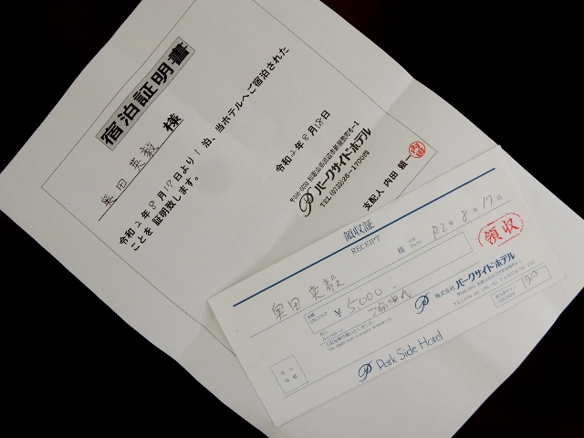 またGo to キャンペーン用に宿泊証明書などを貰い、手続きをします。