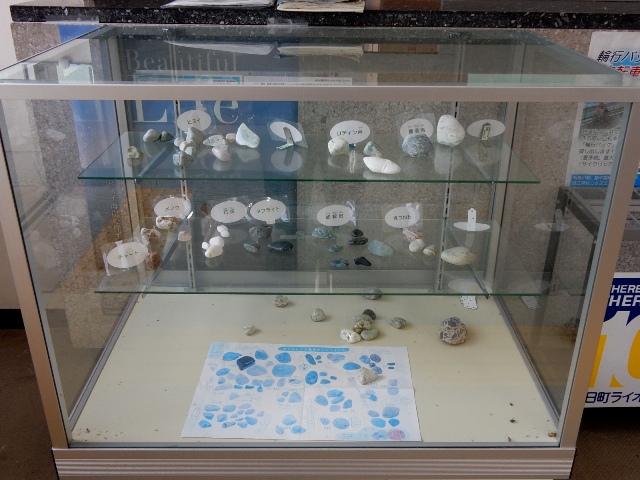 ガラスケースの中にはヒスイの原石が幾つか展示されてます。