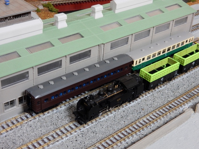 新車としてのC11型と、何か古そうな2軸貨車が何両か入ってます。