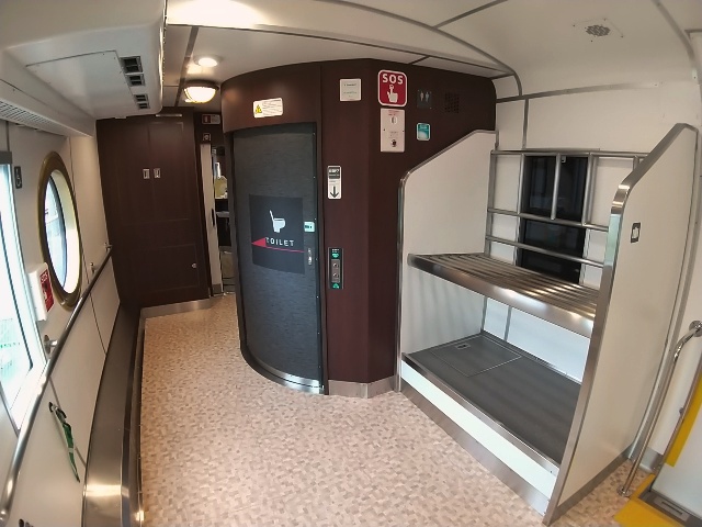そして車端部には荷物棚とバリアフリー化したトイレがあります。