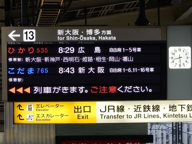 京都からの列車は前回の山口県の時と同じ、0829発のひかり535号。