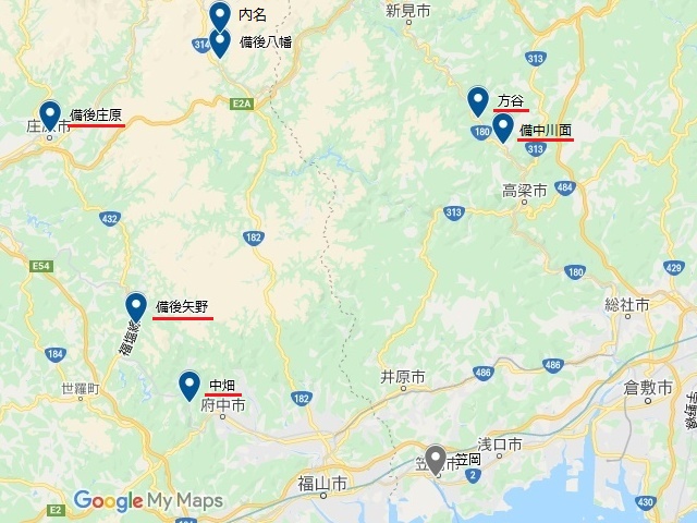ココへ行くなら、ついでに回れる周辺の設置駅は福塩線の備後矢野