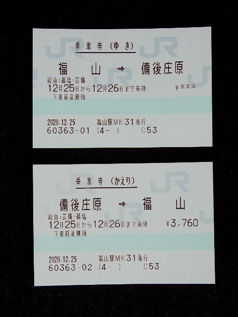 今回もクレーム除けに乗車券を購入します。備後庄原までは福塩線