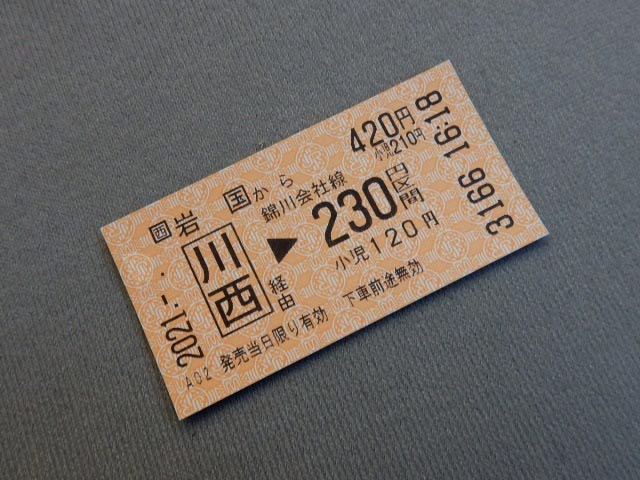 鉄道では車内清算が基本であり、切符として買えるのはJRの岩国駅