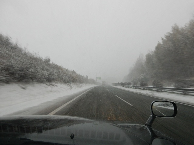 降る時は降る筈です。結果的に古賀辺りで通行止めになり、一般道へ