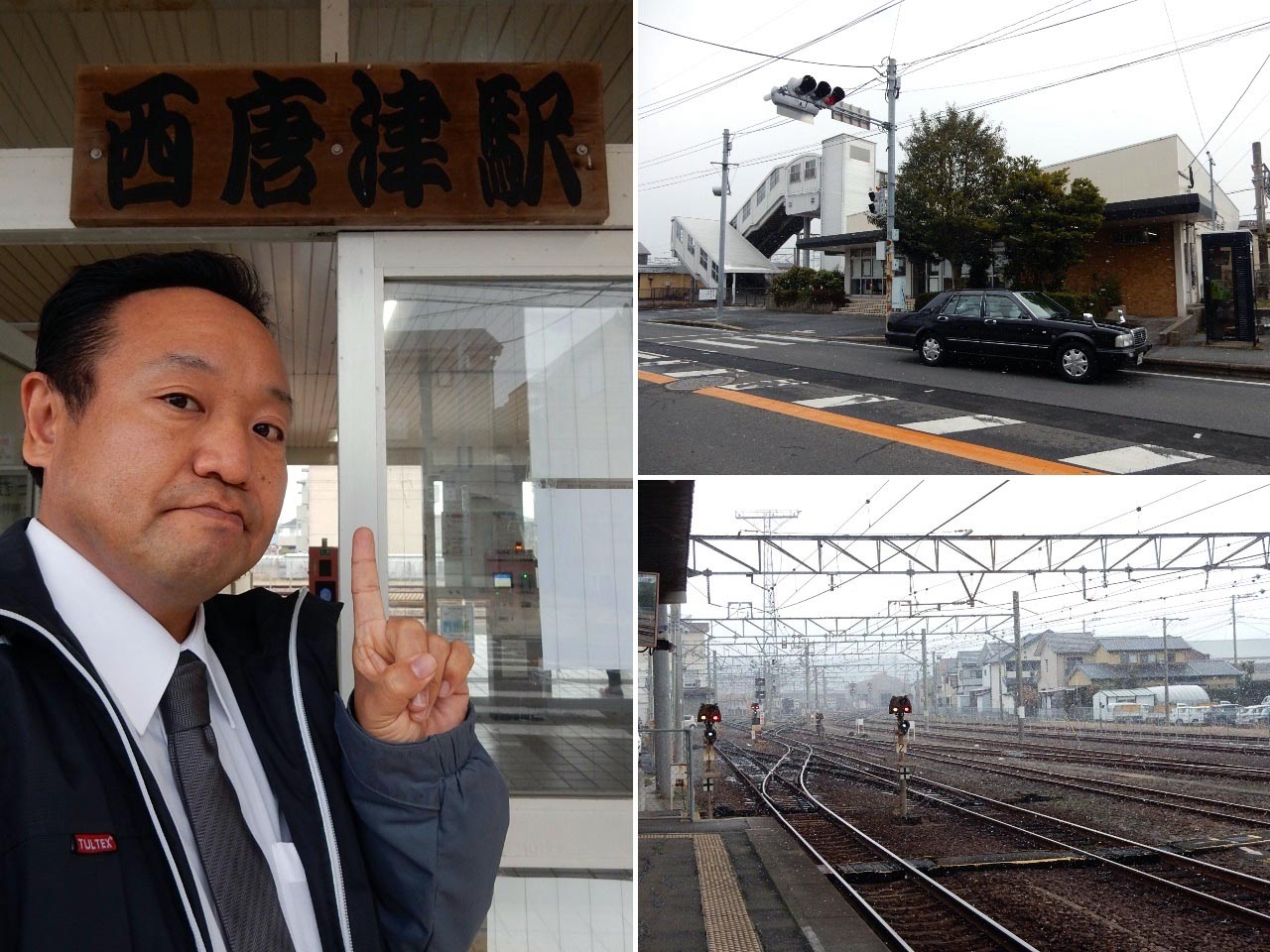 時間を食って西唐津駅に到着しました。…表情が硬いのは寝不足と
