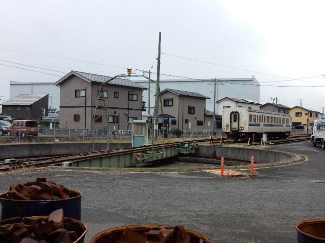 航空写真で見ると留置線の敷地の奥に転車台が残っており、すぐ横