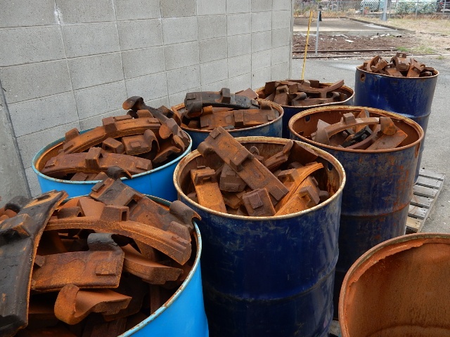 横に山積みになってるのは、使用済みのブレーキパッドですな。