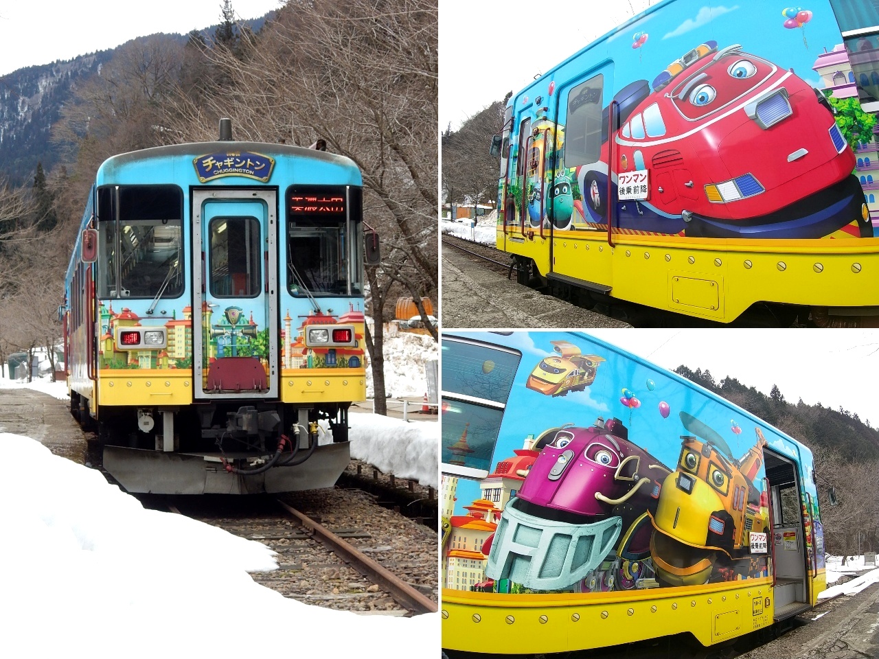 …そんな中、チャギントンのラッピング列車がやって来ました。