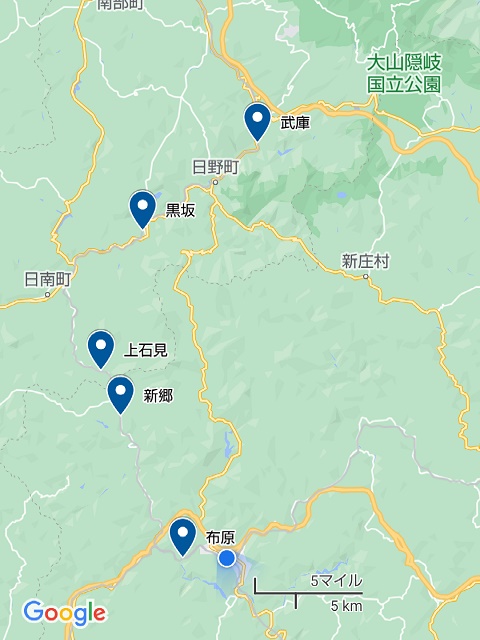岡山県、以北が鳥取県になります。基本的に遠い順に回る方が楽