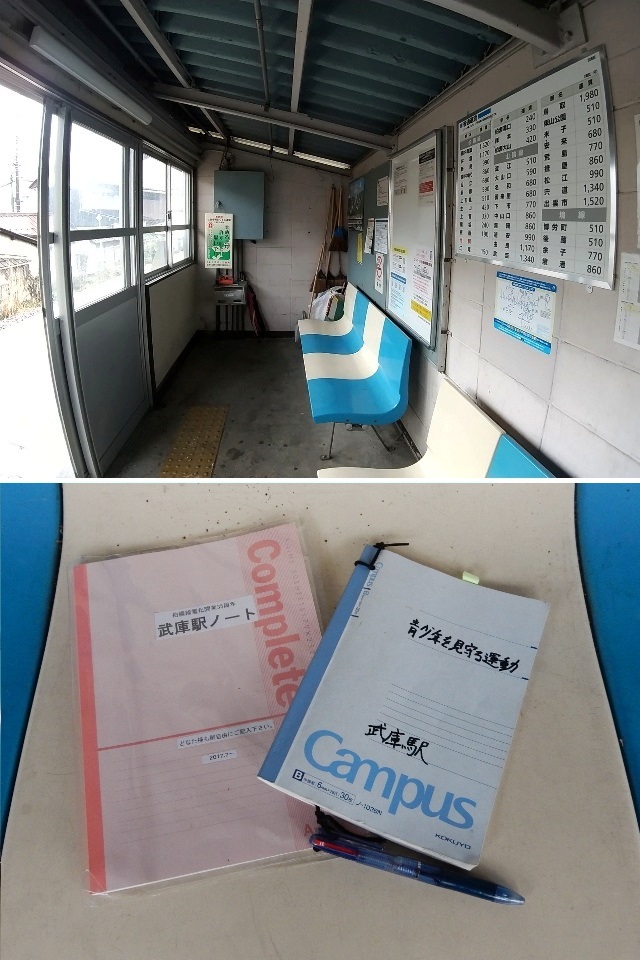 駅ノートは待合室内にあります。近所の自治会かドコかが用意した物