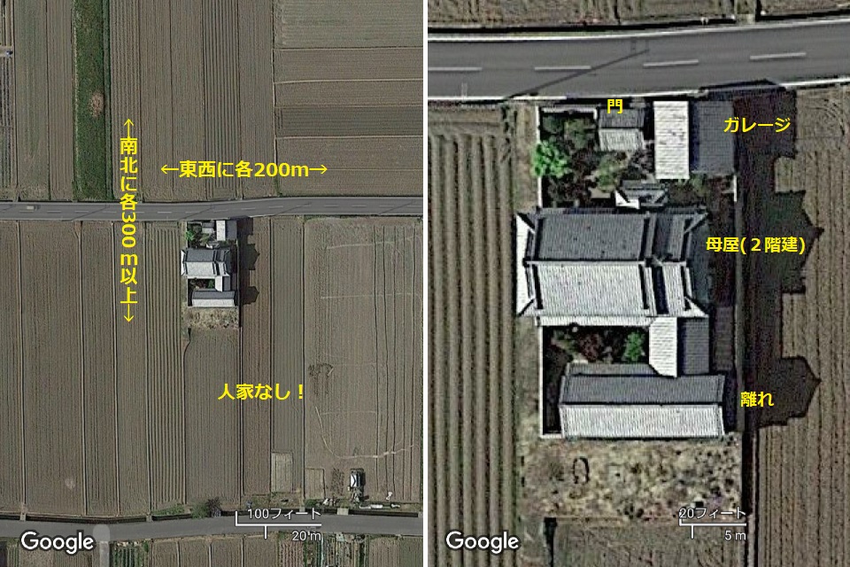 まで各方向とも200m以上離れた一軒家なのですよ。