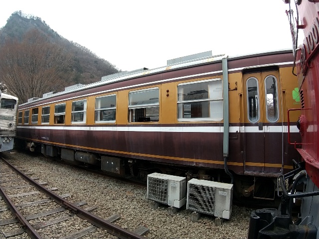 …進駐軍用の客車は一般的な茶色い客車より少し明るい、ミルク