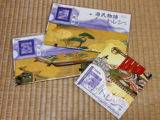 右は源氏物語の絵巻物をデザインしたメガネ拭きですね。