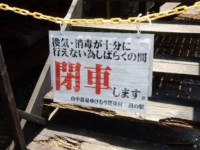 …普段なら車内も公開されてるらしく、外から見る限り山中温泉を