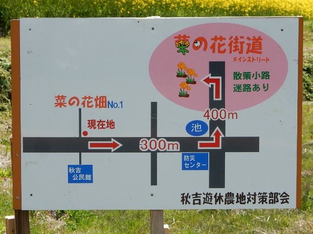 季節は4月の半ばだったので、菜の花がキレイに咲いてる所があり