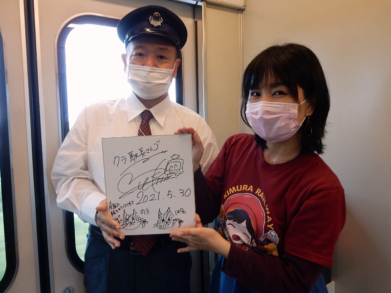 日本海ひすいラインの車内で何だカンだとサインを貰い、ツーショット