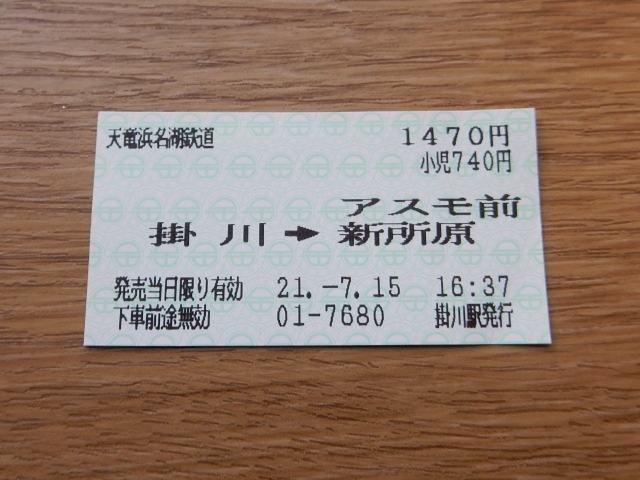 前後しましたが天浜線の掛川駅に行って、寄付代わりの乗車券として