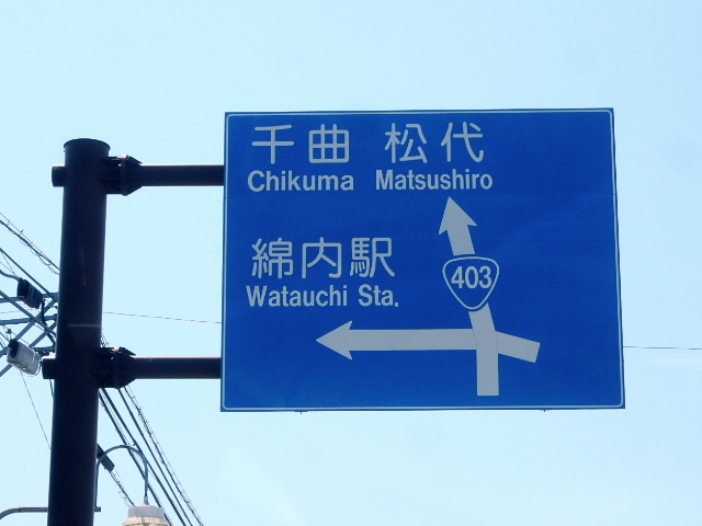 「綿内駅」の表示が残ったままの道路標識に従って脇道へ入ると、