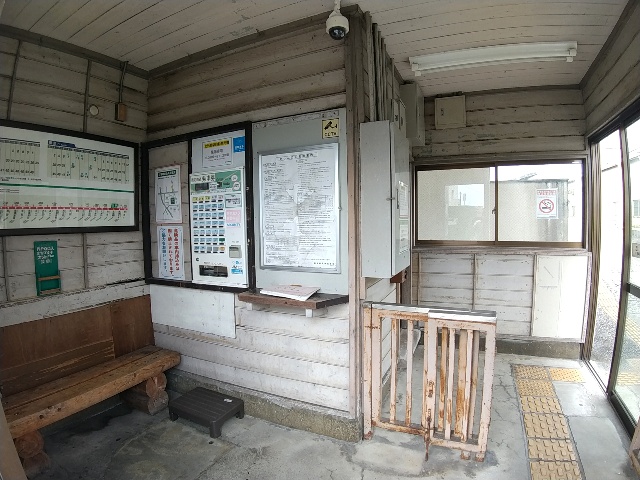 小規模な駅務室の跡が残ってますが、JRのソレと同じように板で
