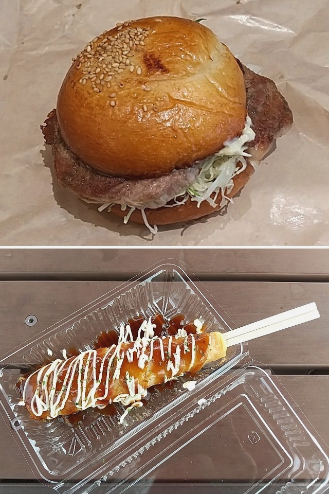 入ったハンバーガーと「はしまき」と言う物を頂きました。