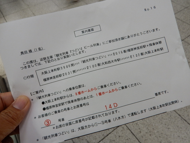 さて観光列車「つどい」によるビール列車ですが、大阪上本町駅での