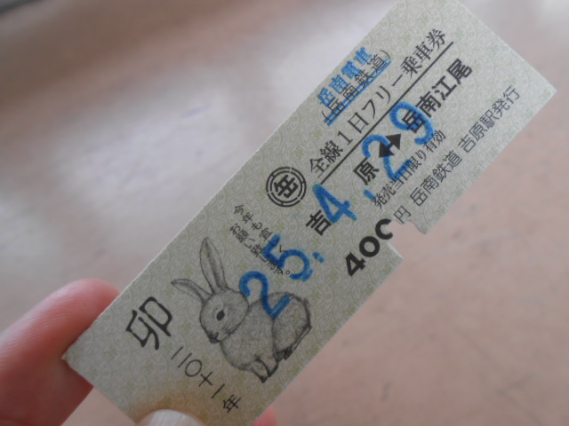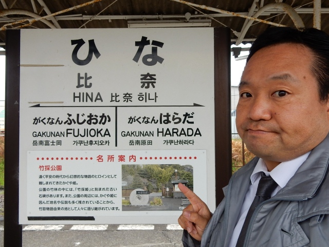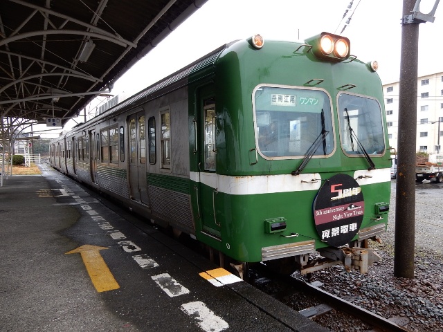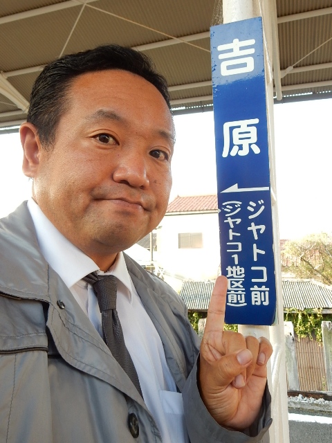 終点の岳南江尾に到着しておりますクラ駅長です。