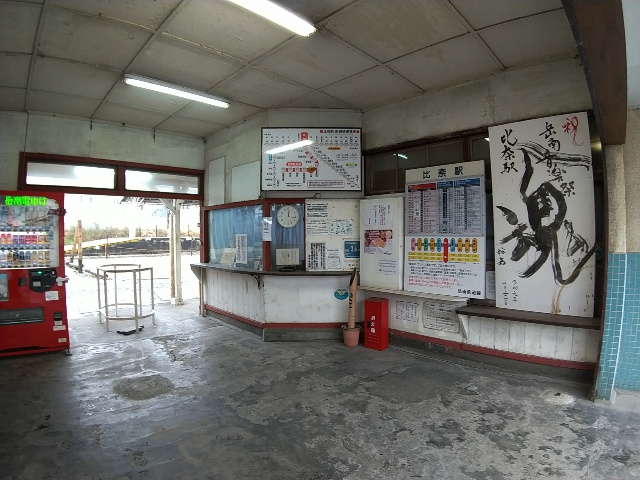 当然に昔は有人駅だった筈で、手回し式と思しき発車案内が枠だけ
