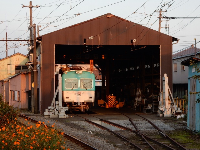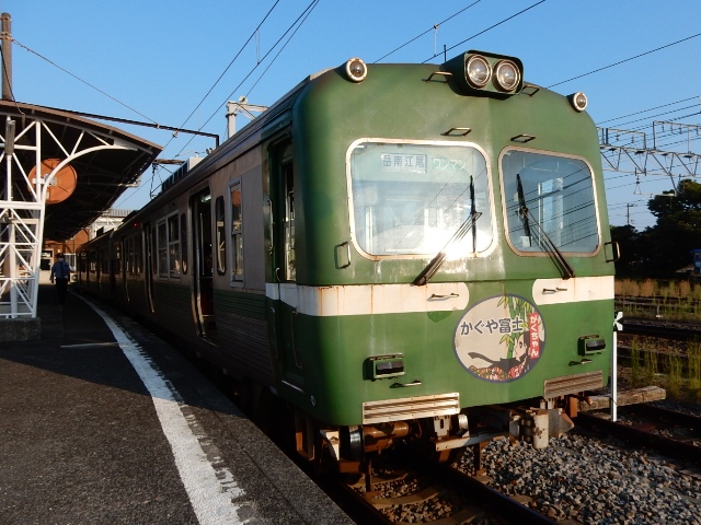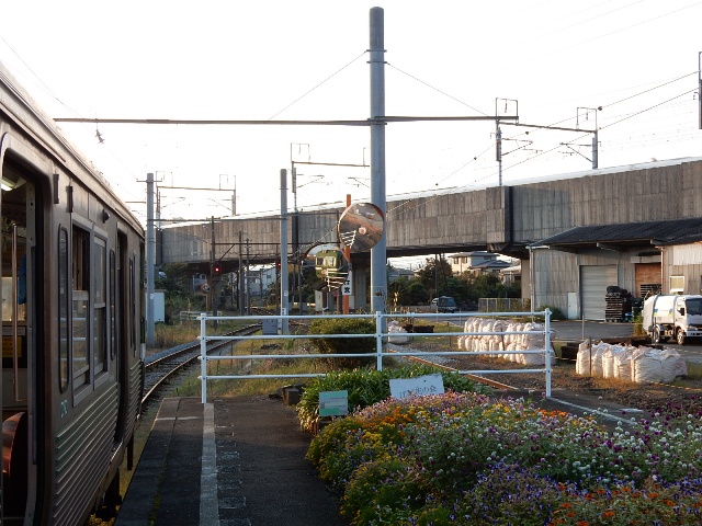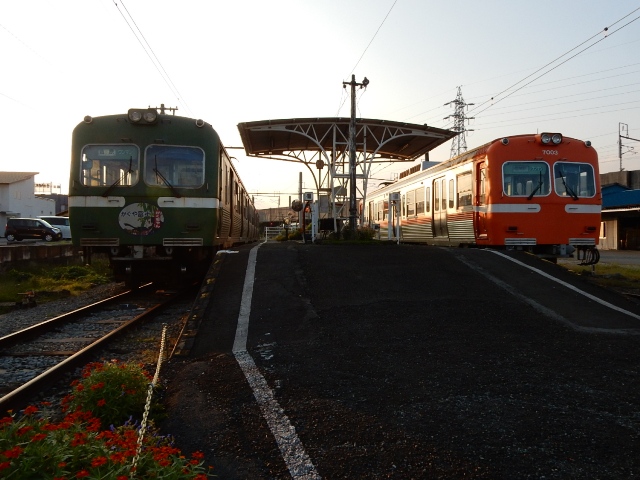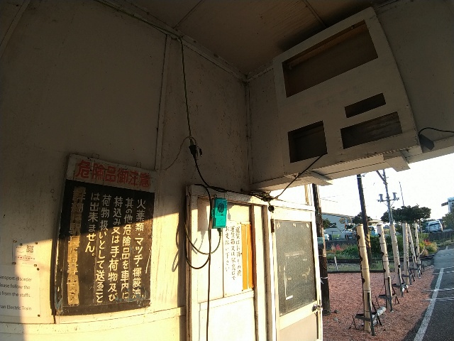 すっかり陽の傾いた時刻になりましたね。岳南電車の駅は、駅舎の