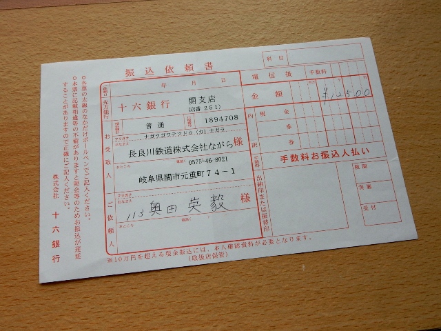 そして年内に振り込み用紙が送られてきて、指定の口座に入金したら