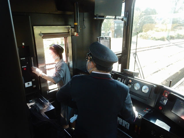 では運転士さんは車両を移動せず、アテンダントさんが窓から顔を