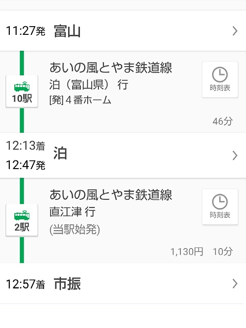 終点の直江津までの間、時刻表に載ってる停車駅は糸魚川だけ