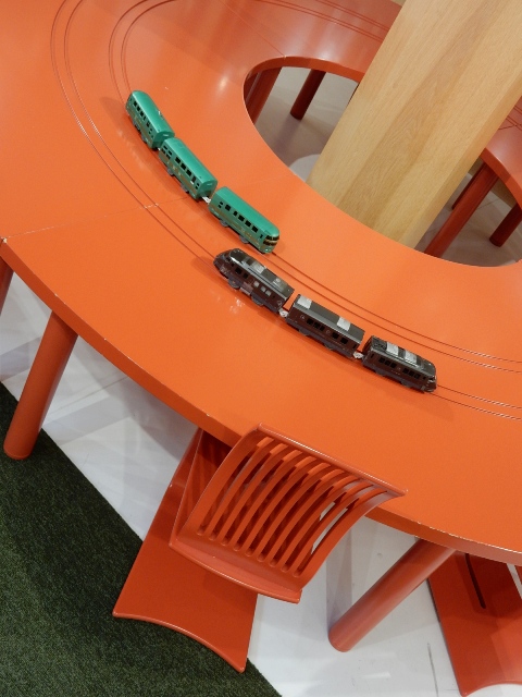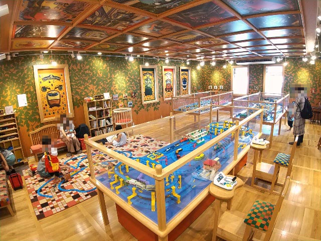 外国のレトロな電車を模したような車両が降りてきました。