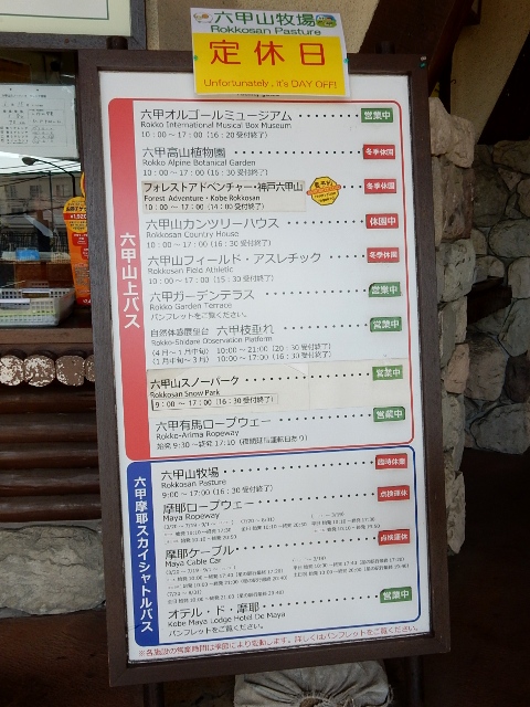 六甲山上の各観光施設について、営業してるか否かが改札前に表示