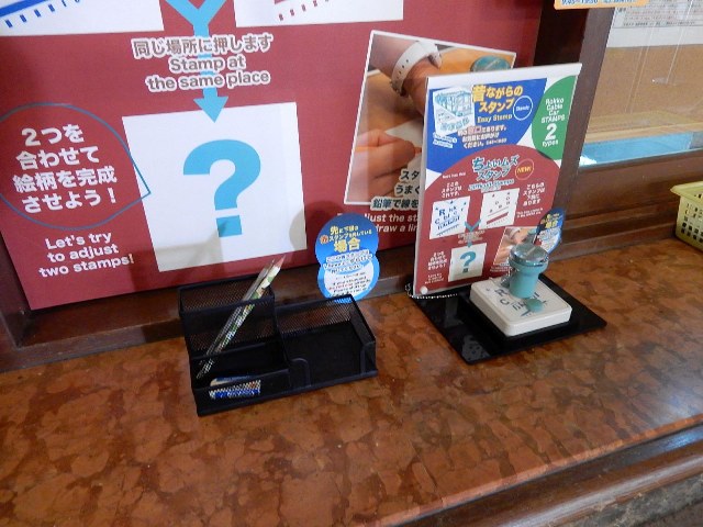 …駅舎内のスタンプ捺しのコーナーに筆記用具があり、もしかしたら