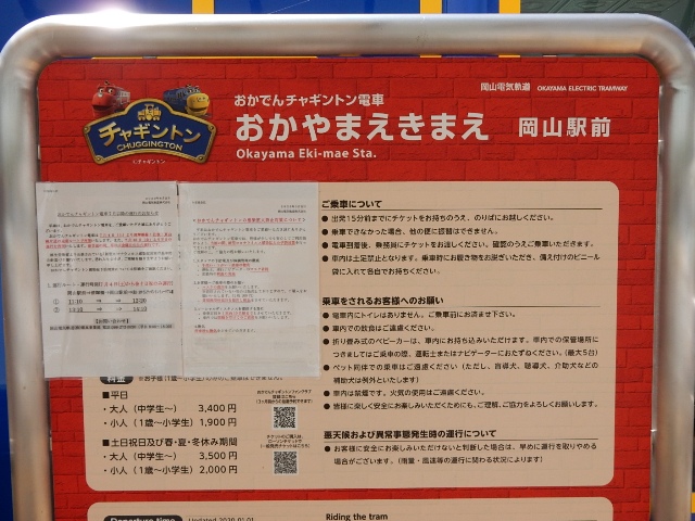 さて「おかでんチャギントン」ですが、先に外側の歩道から編成全体
