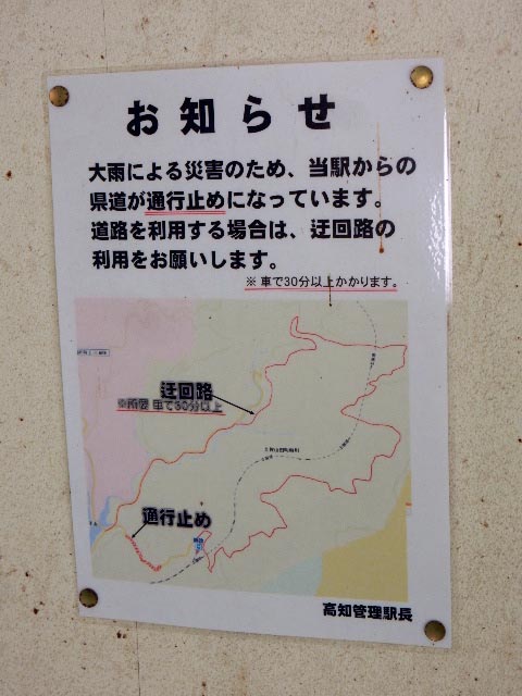 些か前後しますが新改駅にあった、通行止めに関する告知の