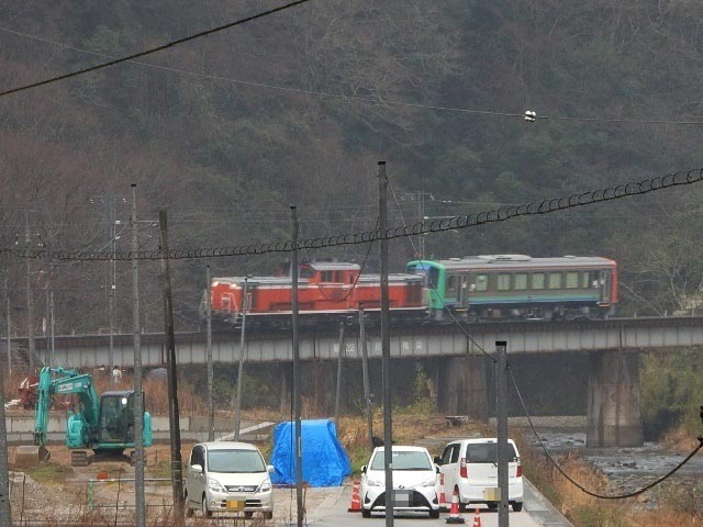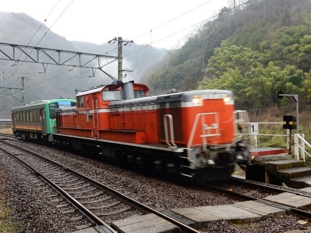 …キハ120がDD51に牽かれて走ってきました。無動力回送です。