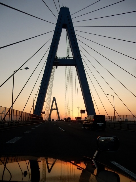 斜張橋の橋脚やケーブルが空とのコントラストになってキレイですね。