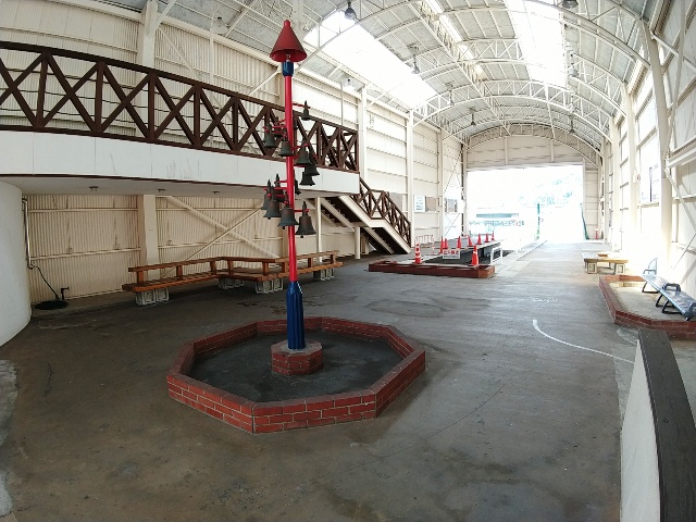 真ん中の岸壁の、倉庫風な屋根が並んでる所がソレですよ。